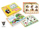 Elektrická výuková hračka pro předškolní děti od 4 let, obsahuje 16 listů s obrázky, mezi nimiž hledají děti souvislosti. Správnou odpověď signalizuje zelené světélko.